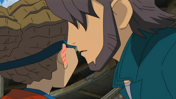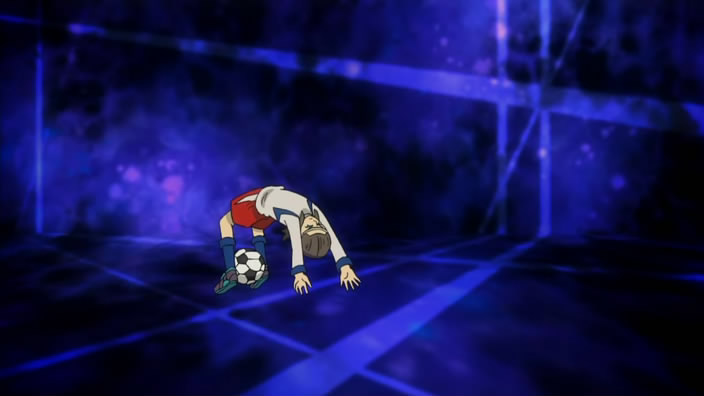 这集里面震撼仅次于“监督杀手鬼道”的就是,埃德加回防至自家禁区在豪炎寺射门进行时截下了球后居然抬脚就发动EXCALIBUR朝着INAZUMA泥轰的大门轰过去……